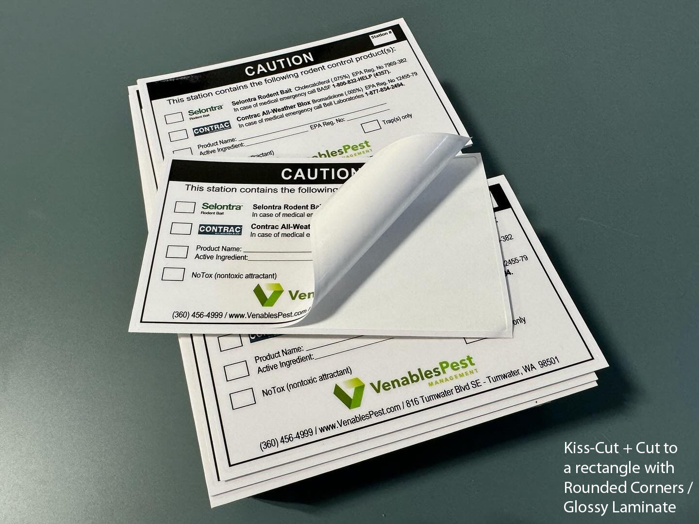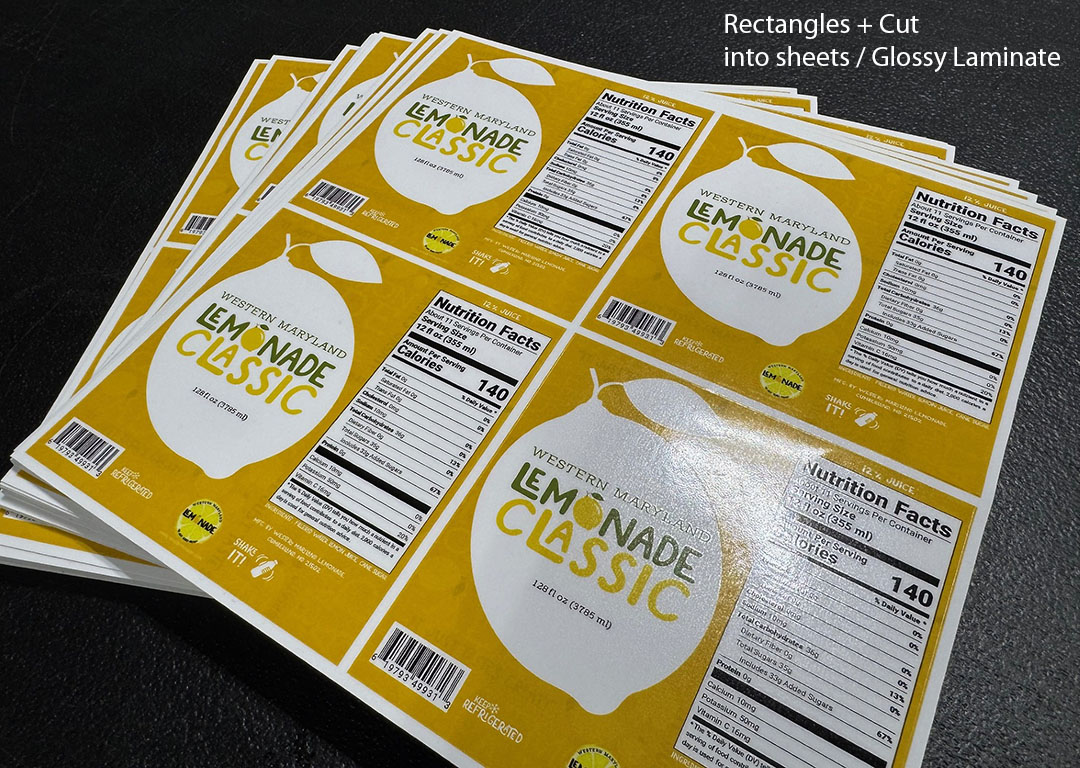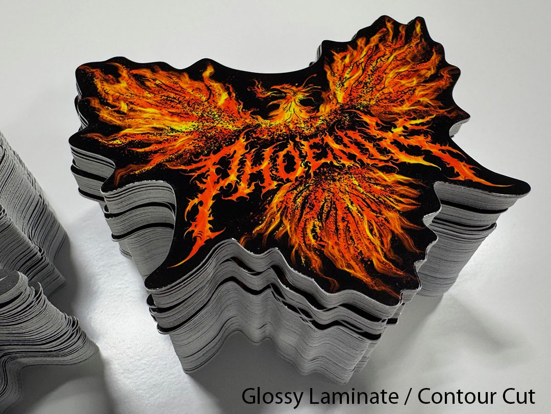 Protective Finish is always applied: Multiple laminate options are available to determine the final look, feel and thickness of your stickers.