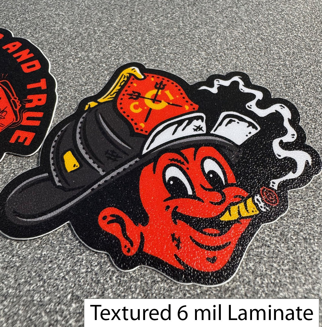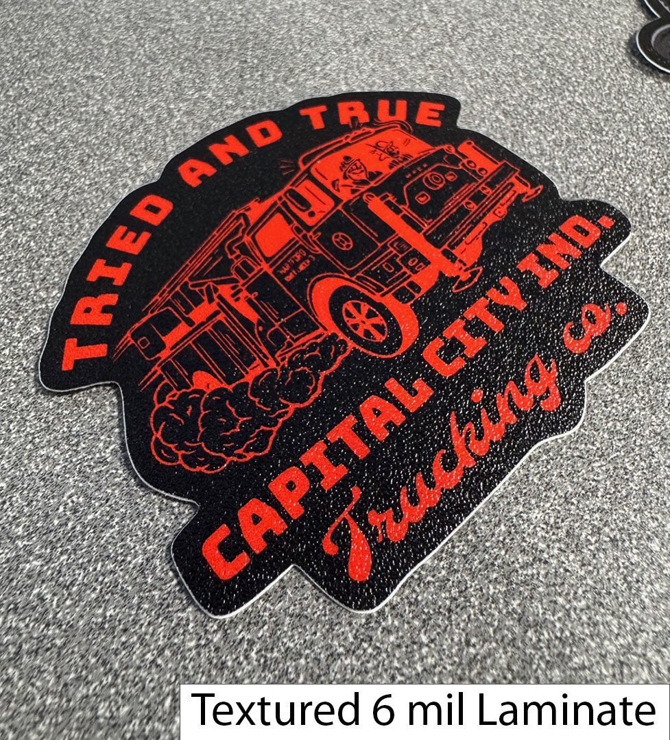 - 6 mil Textured Laminate: Gives the sticker a tougher, more substantial feel. Once applied to the vinyl, the sticker reaches a total thickness of approximately 9 mil. It features a distinct tactile texture with a luster level between matte and gloss.